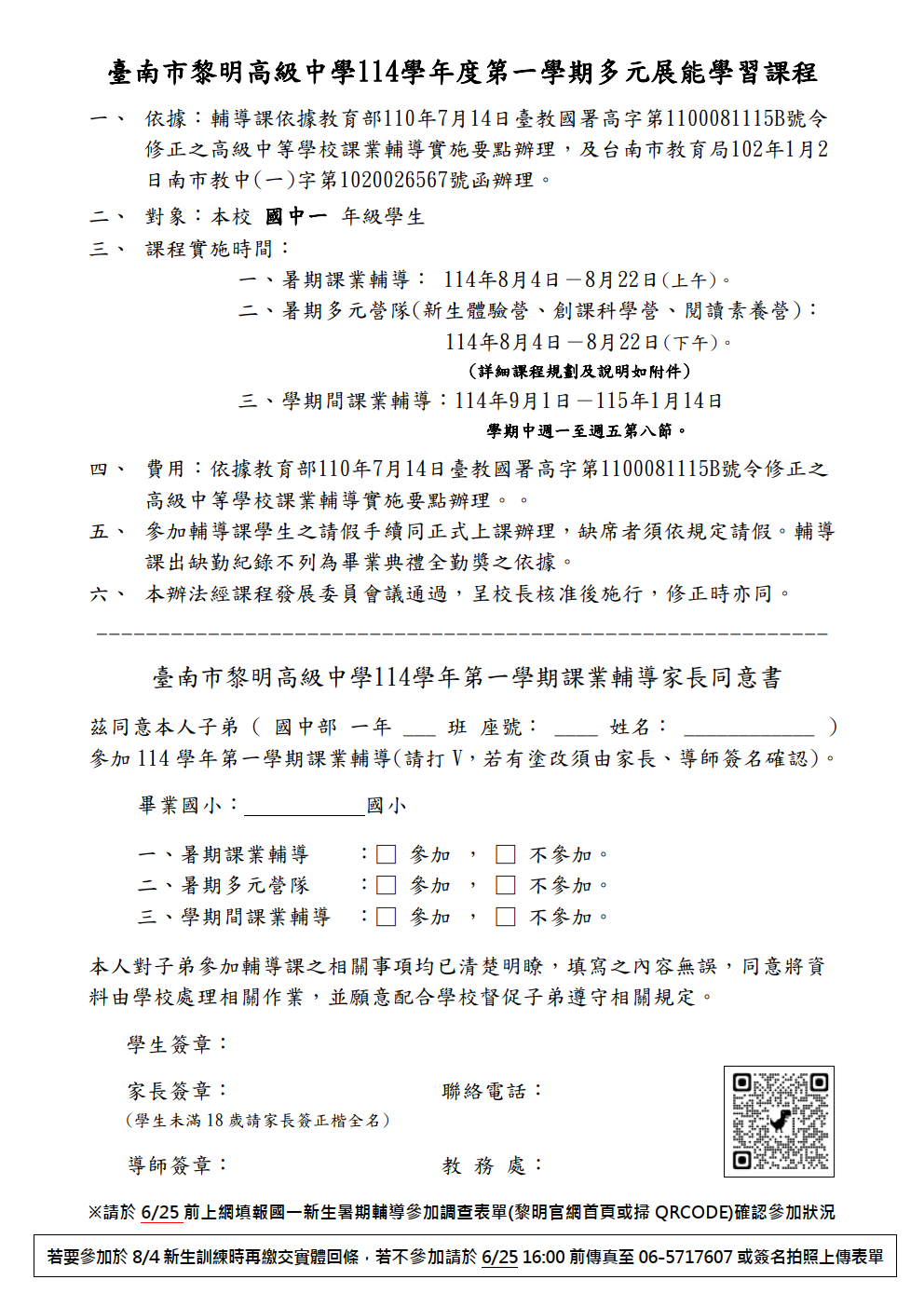 ⚠ 暑期輔導課(8/4-8/22上午)、暑期多元營隊(8/4-8/22 下午)